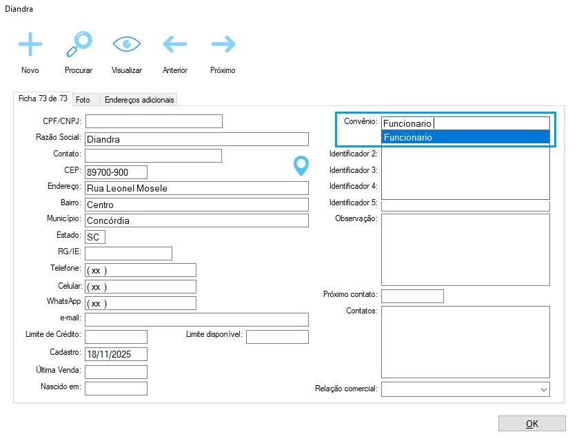 Após isso, no cadastro de clientes basta selecionar o convênio desejado.