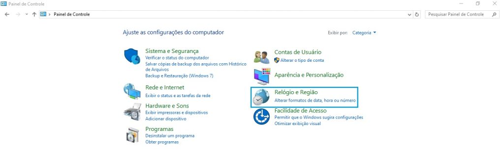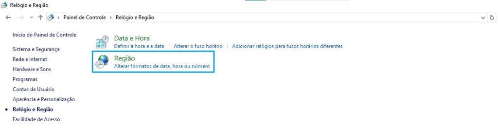 Feche o erro, abra o painel de controle e localize Relógio e Região e clique sobre ele