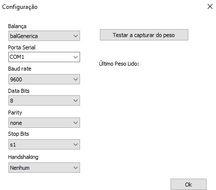 Aparecerá a configuração da balança e a tela para captura de peso conforme prints abaixo:
