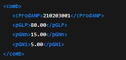 Para que a validação seja atendida, devem ser preenchidas as seguintes tags no grupo de combustível: